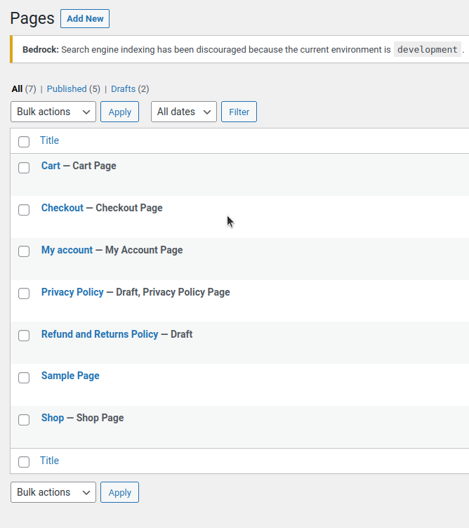If this is a fresh installation, WooCommerce should auto-generate a Cart, Shop, and Checkout page upon activation.