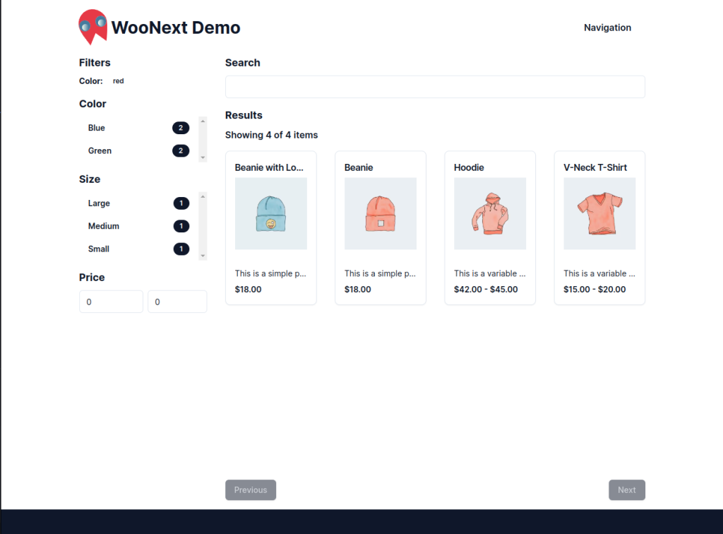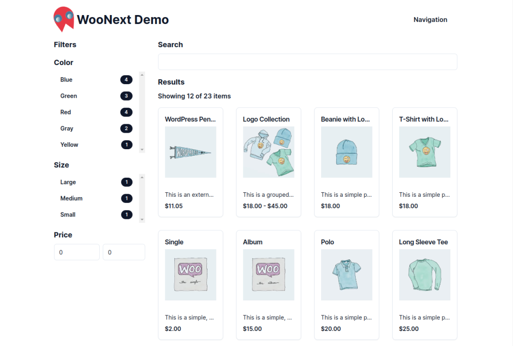 The demo is fully decked out putting all current possible functionalities of the @woographql/next template suite to use.